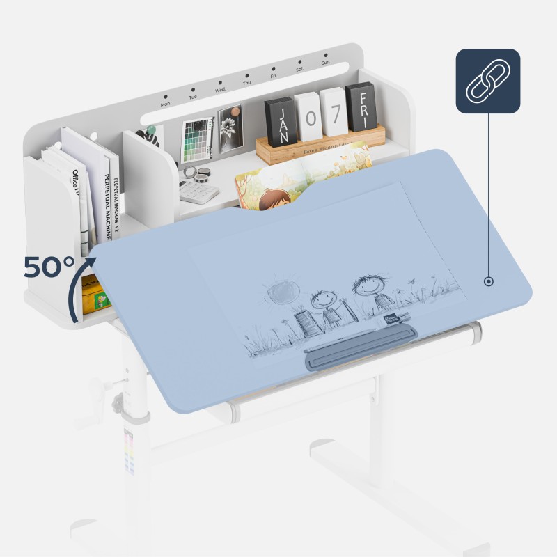 - Funkcja pochylenia blatu do 50° dla wygodnego pisania czytania i rysowania