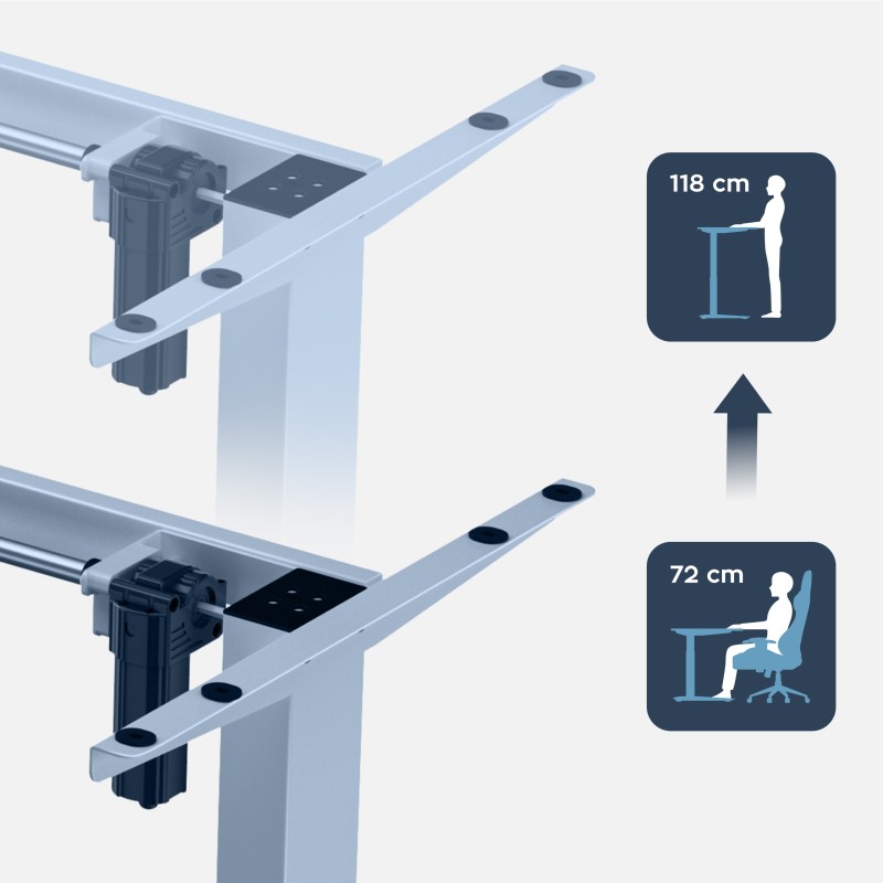 - Wysokość blatu: min 72 cm — max. 118 cm