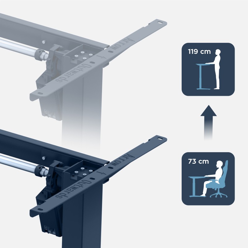 - Zakres regulacji wysokości od 72 do 118 cm (wysokość uwzględnia sam stelaż bez blatu)