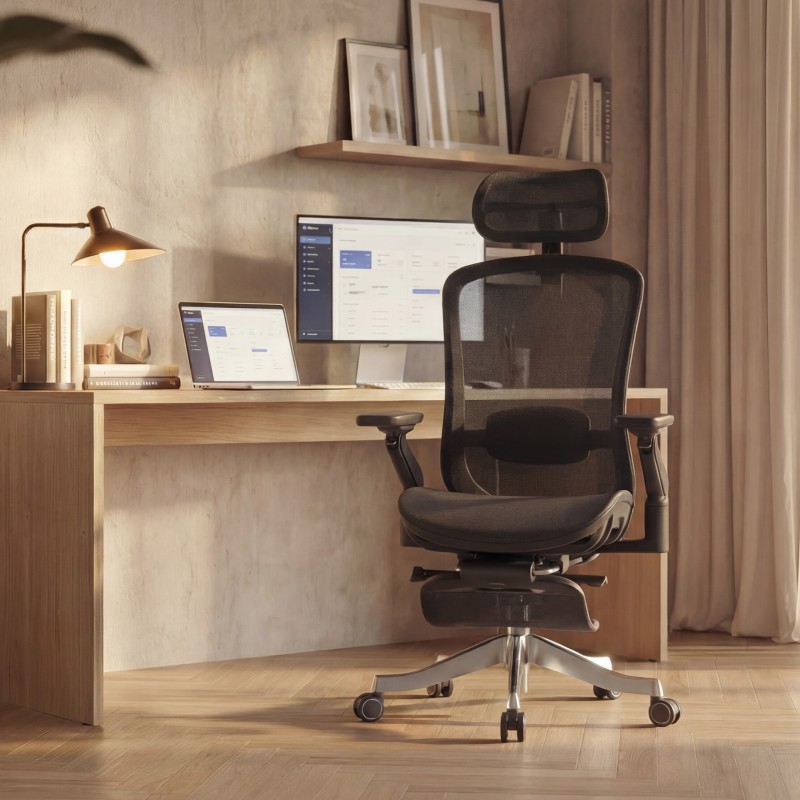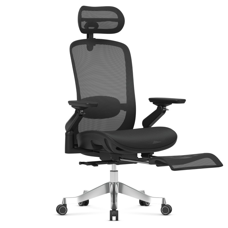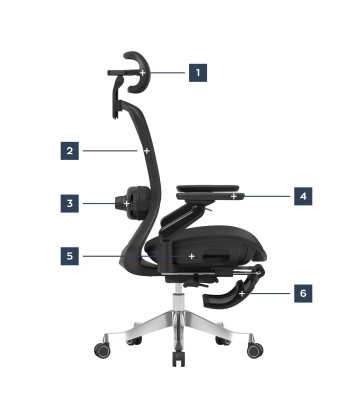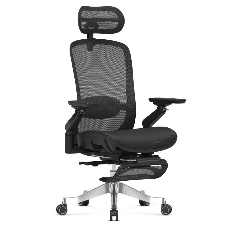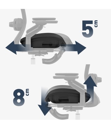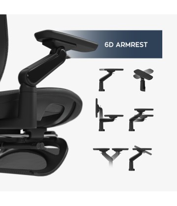 - Podłokietniki 6D – wielokierunkowa regulacja (wysokość, przód–tył, obrót, kąty)
