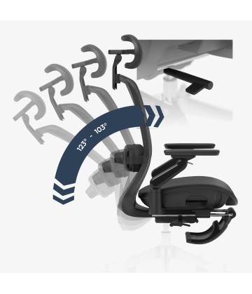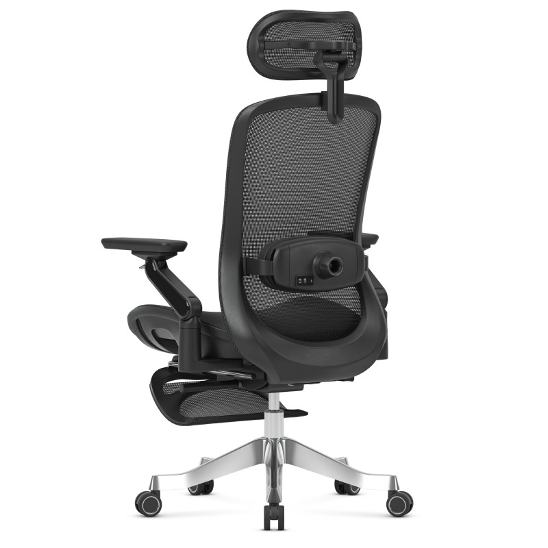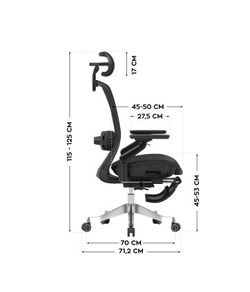 - Oparcie regulowane – odchylenie 90°–145°, 3 pozycje blokady, mechanizm dynamiczny