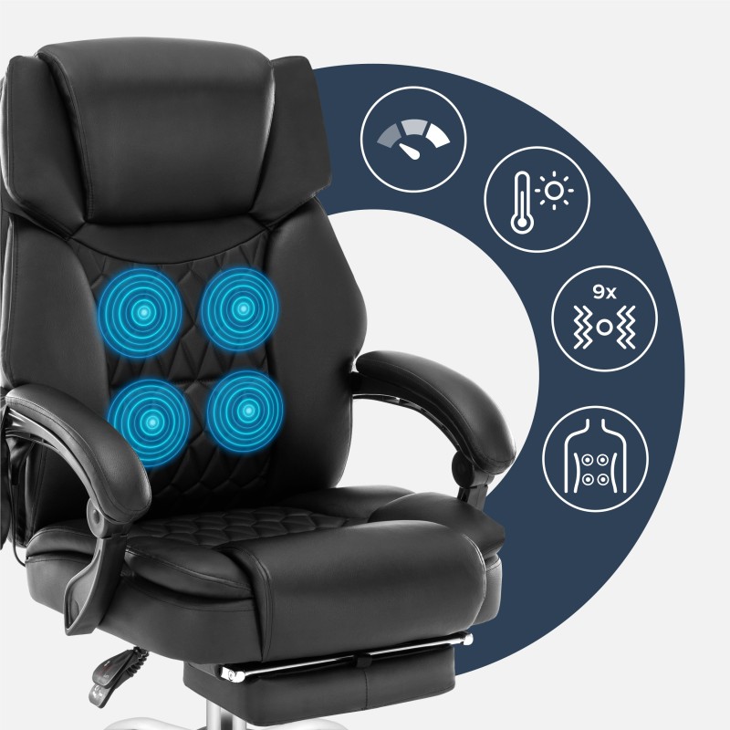 - Fotel do biurka z podnóżkiem wyposażony jest w funkcję grzania, która wspomaga krążenie krwi i zwiększa rozluźnienie mięśni.