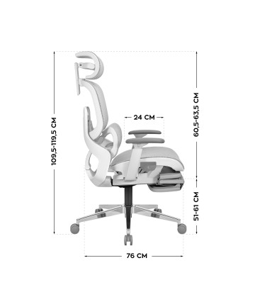 - Oparcie: materiał flocked mesh, regulacja wysokości 109,5–119,5 cm