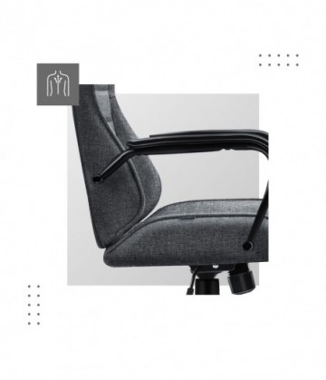 Fotel posiada antypoślizgowe podłokietniki, które gwarantują pełne wsparcie rąk i ramion. Prawidłowa postawa i odciążenie barków oraz górnej części pleców jest kluczowe przy długotrwałej pracy, a dzięki podłokietnikom właściwa pozycja jest naturalna i po prostu wygodna.