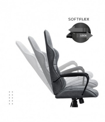 Funkcja SoftFlex pozwala bujać się w fotelu, co dla wielu osób jest wręcz synonimem wygody. Mechanizm można zablokować w pozycji pionowej dla pełnej stabilności. Wystarczy jednak jeden ruch ręki, aby zwolnić blokadę i przejść do trybu relaksu.
