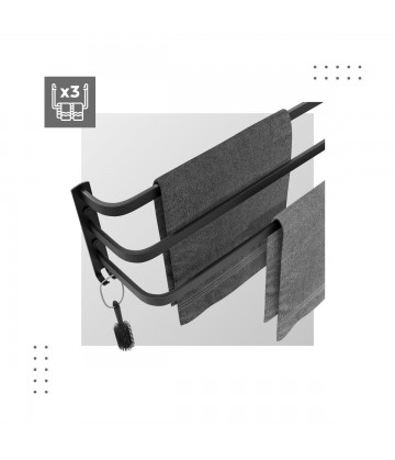 Wieszak Mark Adler Level 3.0 posiada trzy ramiona — relingi na ręczniki, rozplanowane w taki sposób, aby zapewnić maksymalną ilość miejsca do odwieszania bez zbędnego zabierania przestrzeni w łazience.