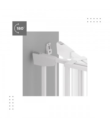 - Bramka zabezpieczająca otwiera się w obie strony, osiągając aż 180° ruchu.