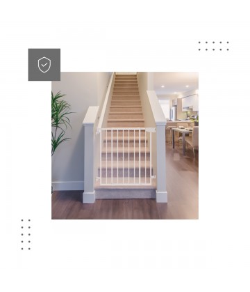 - Uniwersalny rozmiar pozwala dopasować bramkę ochronną do szerokości futryny lub schodów.