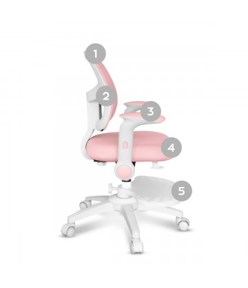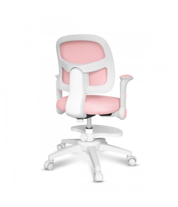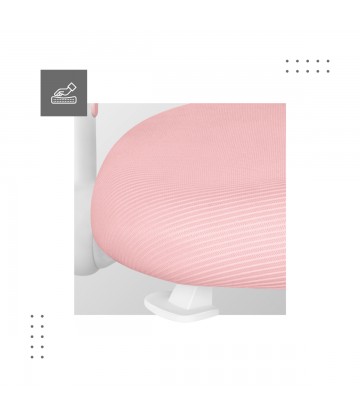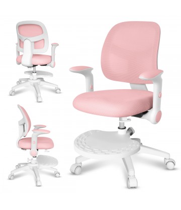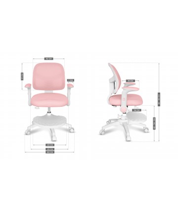 - Design fotela jest dostosowany do potrzeb rosnącego dziecka. Dzięki regulacji wysokości krzesła, podłokietników i podnóżka, krzesło obrotowe różowe dopasować można do różnego wzrostu.