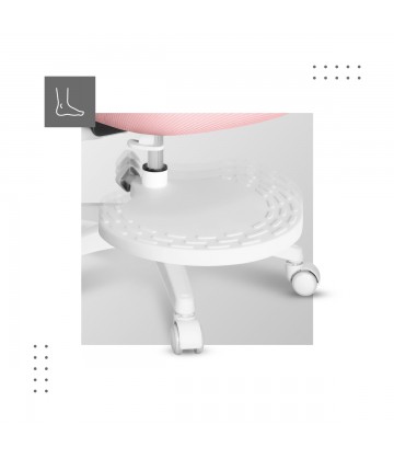 Podnóżek ułatwia przyjęcie ergonomicznej pozycji podczas siedzenia i zapobiega męczeniu się nóg. Regulacja góra – dół umożliwia dopasowanie krzesła obrotowego do wzrostu, gwarantując dziecku stabilne podparcie.