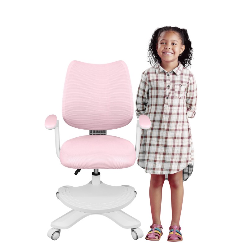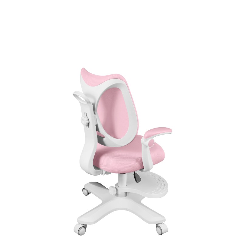 Wyprofilowane podłokietniki fotela Junior skutecznie podpierają przedramiona, zapobiegając wiszącym łokciom i nadmiernemu napięciu mięśni barków. Dzięki możliwości ich odchylenia, krzesło bez problemu wsunie się pod blat biurka.