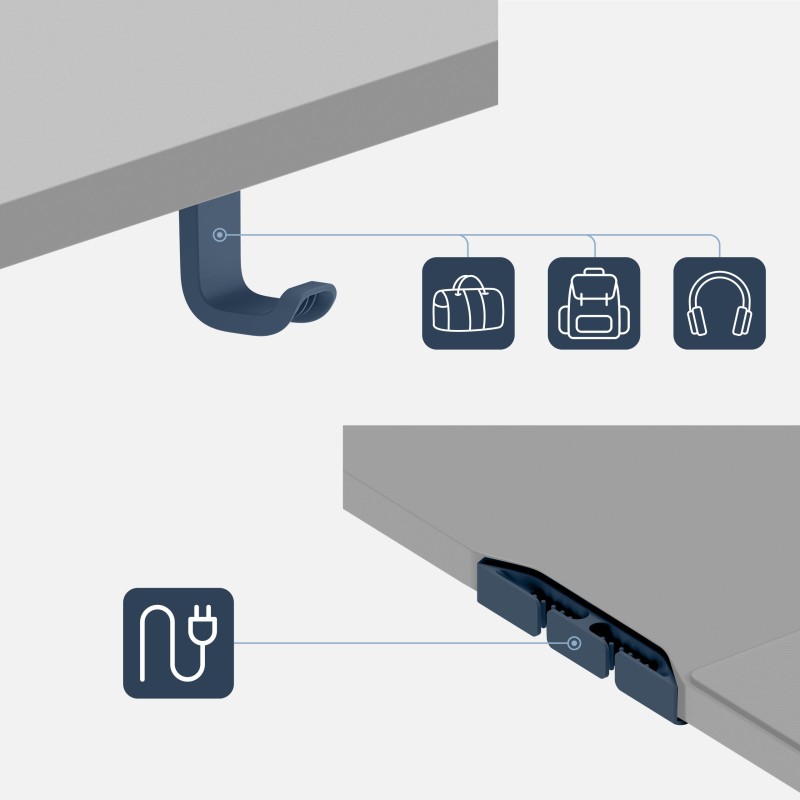 - W zestawie: organizer i wejścia na przewody oraz podkładka na blat o wymiarach 80x80x2cm