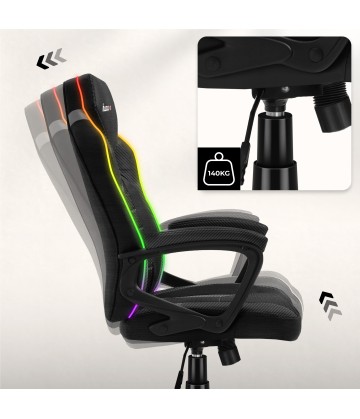 - Materiałowy fotel gracza z oświetleniem RGB LED